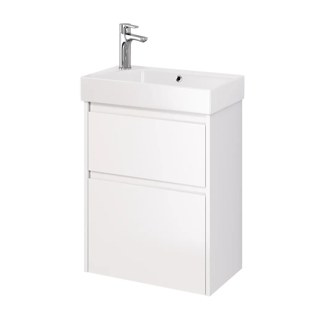 Тумба SLIM, 55 см, подвесная/напольная, 2 ящика, белый глянец