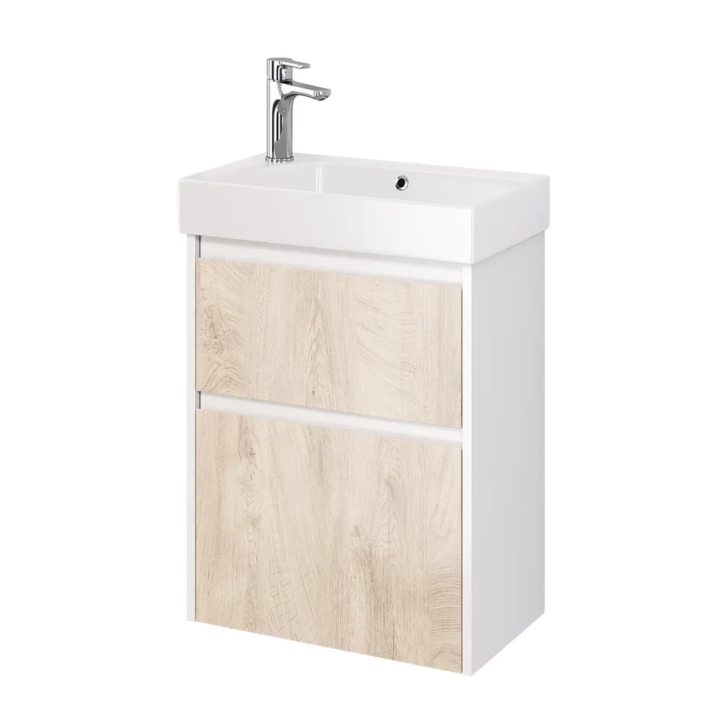 Тумба SLIM, 55 см, подвесная/напольная, 2 ящика, белый глянец / дуб кантри