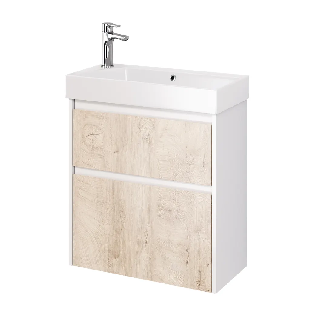 Тумба SLIM, 65 см, подвесная/напольная, 2 ящика, белый глянец / дуб кантри