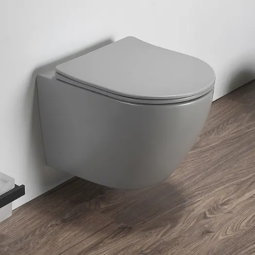Унитаз Azario Grado подвесной безободковый (прямое сиденье) светло-серый с сидением микролифт 490*370*370 арт-AZ-0046 SP MH