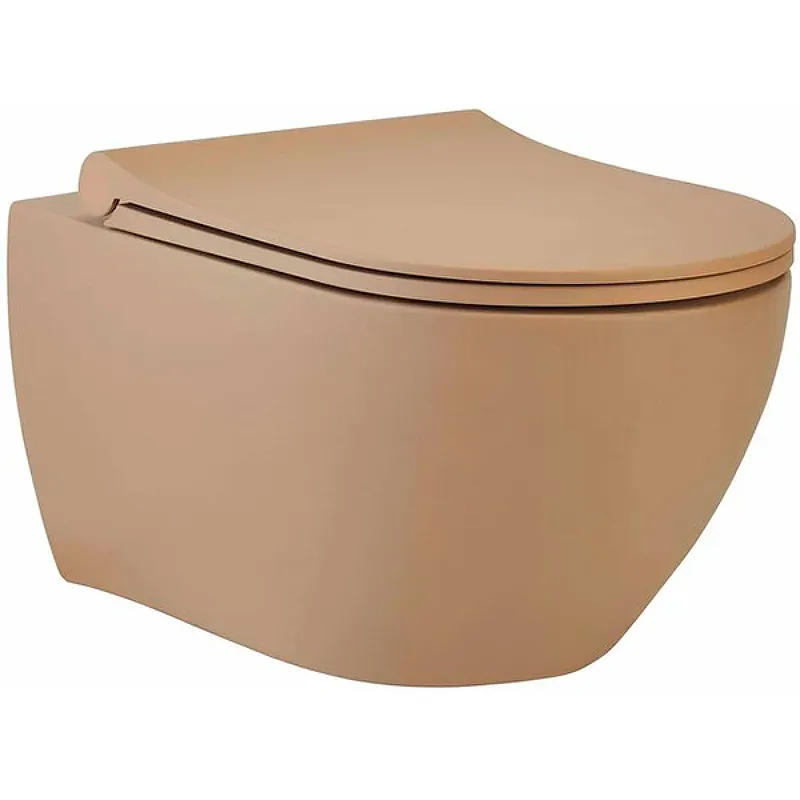 Подвесной унитаз beWash Bogen 88303273.Характеристики: Цвет: бежевый матовый. Материал: фарфор. Габариты (ШхВхД): 355х400х530 мм. Форма: овальная. Конструкция: безободковая. Сиденье с функцией Soft-Close (плавное закрытие крышки). Материал сиденья: дюропласт. Монтаж: подвесной. Выпуск: горизонтальный. Организация смывающего потока: каскадный слив. Антигрязевое покрытие. Антибактериальное покрытие. Система антивсплеск. В комплекте поставки: