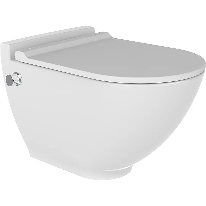 Безободковый подвесной унитаз Bien Harmony HRKA052N5VE0W5000 с гигиеническим покрытием, с функцией биде, со встроенным смесителем, в комплекте с крышкой-сиденьем Soft Close. Безободковая конструкция чаши унитаза обеспечивает высочайший уровень гигиены и неприхотливость в уборке отсутствием труднодоступных мест для мытья. Гигиеническое покрытие поверхности Magiclean испытано и одобрено немецким Институтом гигиены и кафедрой генетики и биоинженерии Университета Yeditepe в Турции. Встроенная в чашу унитаза форсунка биде Easy Wash имеет эстетичный вид и эргономичное управление.Характеристики: Цвет: белый. Материал: сантехнический фарфор. Гигиеническое покрытие: защита от бактерий, микробов, грибка. Конструкция: безободковая. Система антивсплеск. Функция биде: встроенная форсунка, эргономичное управление. Крышка-сиденье Soft Close: плавное амортизированное закрытие, быстросъемный механизм. Выпуск: горизонтальный, в стену. Монтаж: подвесной, крепление к стене. Размеры чаши (ШхВхД): 35 х 33 х 52,5 см. В комплекте поставки: Чаша унитаза с бидеткой. Крышка-сиденье Soft Close. Встроенный смеситель. Гибкая подводка.