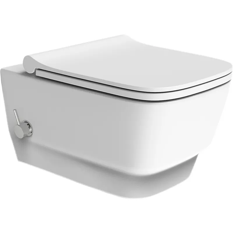 Унитаз-биде Boheme Bello 971-2-MW подвесной.Характеристики: Материал: фарфор. Цвет: белый матовый. Габариты (ШхВхД): 35,5 x 37 x 53 см. Безободковый. Слив: каскадный. Тип выпуска: вертикальный (в пол). С функцией биде. Со встроенным смесителем. С системой антивсплеск. С антибактериальным покрытием. В комплекте поставки: Унитаз-биде. Крепления.