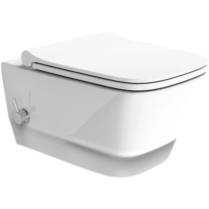 Унитаз биде Boheme Bello 971-2-W подвесной.Характеристики: Материал: фарфор. Цвет: белый глянцевый. Габариты (ШхВхД): 35,5 x 37 x 53 см. С функцией биде. Со встроенным смесителем. Безободковый. Слив: каскадный. Тип выпуска: вертикальный (в пол). С системой антивсплеск. С антибактериальным покрытием. В комплекте поставки: Унитаз-биде. Крепления.