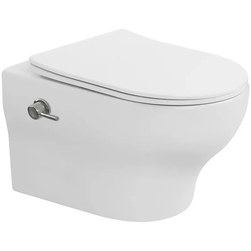 Унитаз биде Boheme Fiore 978-SET-2-MW подвесной.Характеристики: Цвет: белый матовый. Материал: керамика. Размеры (ШxВxД): 360х360х530 мм. Безободковая конструкция (обеспечивающая безупречную чистоту и легкий уход). Организация смывающего потока: система смыва Tornado (обеспечивает мощное и эффективное очищение, экономя воду и поддерживая гигиеничность). Направление выпуска: горизонтальное (в стену). Функция биде. Сиденье из дюропласта с плавным опусканием крышки (микролифт), быстросъемное. Монтаж: подвесной. В комплекте поставки: Чаша унитаза. Крышка-сиденье. Крепления.