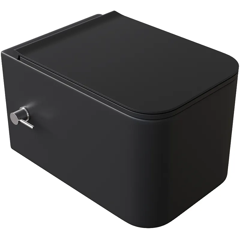 Унитаз биде Boheme Mane 970-SET-2-B подвесной.Характеристики: Цвет: черный матовый. Материал: керамика. Размеры (ШxВxД): 340х300х530 мм. Безободковая конструкция (обеспечивающая безупречную чистоту и легкий уход). Организация смывающего потока: каскадный слив. Направление выпуска: горизонтальное (в стену). Функция биде. Сиденье из дюропласта с плавным опусканием крышки (микролифт), быстросъемное. Монтаж: подвесной. В комплекте поставки: Чаша унитаза. Крышка-сиденье. Крепления.