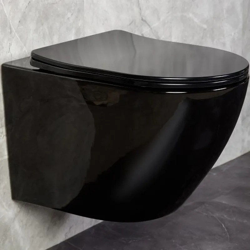 - Эстетичный дизайн: Черный глянцевый унитаз легко сочетается с современными интерьерами, придавая ванной комнате элегантный вид.