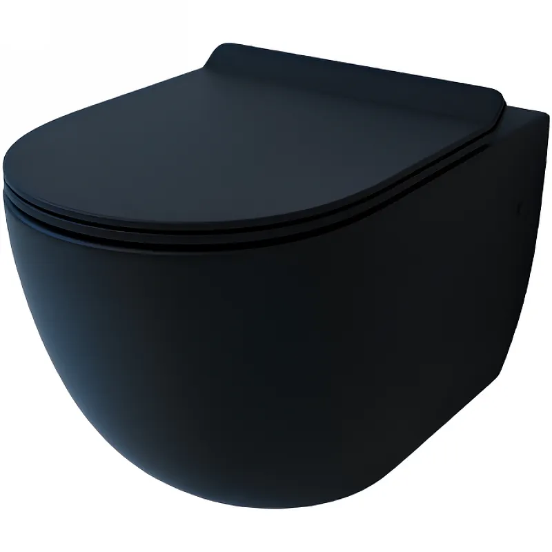 - Современный дизайн: Черный матовый цвет и безободковая конструкция делают унитаз идеальным для современных интерьеров.