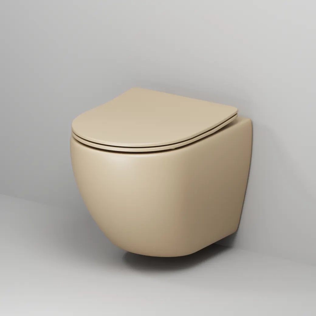 Унитаз Color (485х360х375) БЕЖЕВЫЙ матовый подвеснойбезободковый с тонкой крышкой арт-GR-4455BEMS