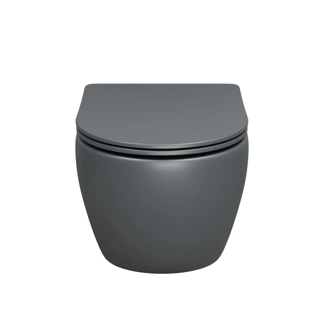 Унитаз подвесной Grossman (520х360х320) безободковый,смыв торнадо,серый матовый с тонкой крышкой,микролифт,1 место арт-GR-4457GMSQ