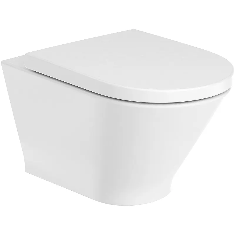 - Современный дизайн: Элегантная овальная форма и безободковая конструкция делают унитаз стильным и удобным в уходе.