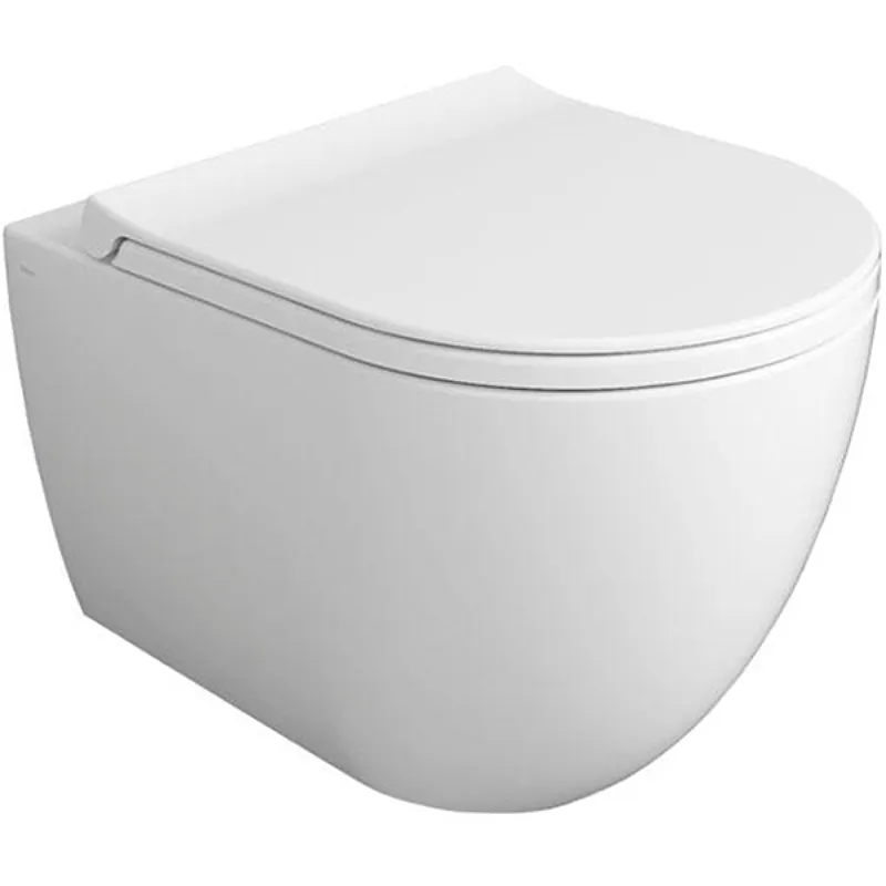- Современный дизайн: Подвесной унитаз безободковый, что облегчает уход и поддержание гигиены.