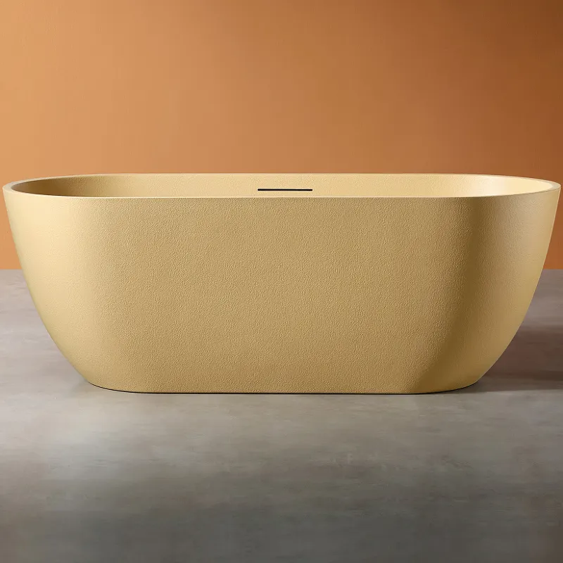 Ванна из искусственного камня Abber Frankfurt 170x75 AM9941MS.Характеристики: Цвет: песочный матовый. Материал: искусственный камень. Размеры (ШхВхД): 750x600x1700 мм. Глубина чаши: 460 мм. Объем: 325 л. Расположение слива: по центру. Форма: овальная. Ориентация: универсальная. Установка: отдельностоящая. В комплекте поставки: Чаша ванны. Каркас. Слив-перелив.
