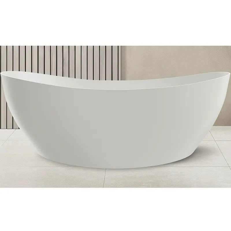 Ванна из искусственного камня Abber Stein 163x85 AS9615-1.6.Характеристики: Цвет: белый матовый. Материал: искусственный камень. Размеры (ШхВхД): 850x640x1630 мм. Глубина чаши: 450 мм. Объем: 290 л. Форма: овальная. Расположение слива: по центру. Диаметр сливного отверстия: 50 мм. Ориентация: универсальная. Установка: отдельностоящая. В комплекте поставки: Чаша ванны. Слив-перелив. Ножки.