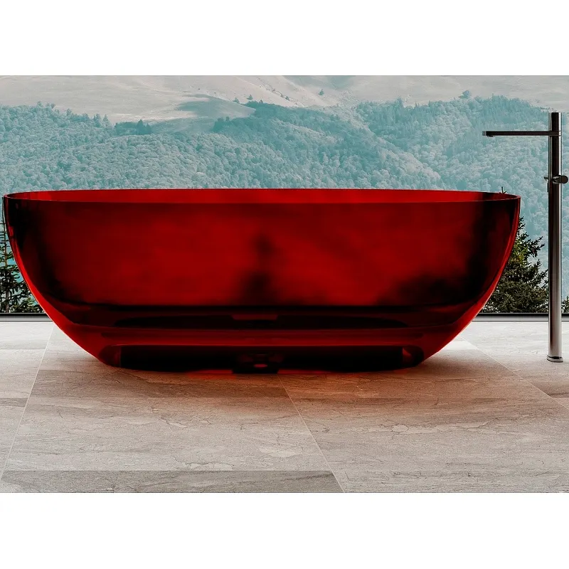 Ванна из полиэфирной смолы Abber Kristall 170х75 AT9703Rubin.Характеристики: Цвет: красный. Материал: полиэфирная смола. Размер (ШхВхД): 750х550х1700 мм. Глубина чаши: 429 мм. Объем: 240 л. Диаметр сливного отверстия: 5 см. Форма: овальная. Расположение слива: по центру. Ориентация: универсальная. Установка: отдельностоящая. В комплекте поставки: Чаша ванны. Донный клапан.