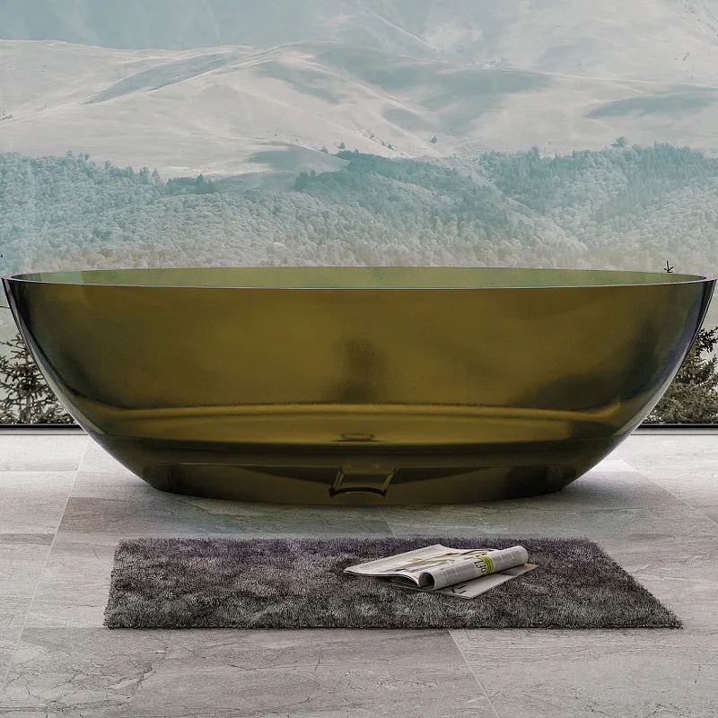 Ванна из полиэфирной смолы Abber Kristall 180х85 AT9702Vesuvian.Характеристики: Цвет: оливковый. Материал: полиэфирная смола. Размер (ШхВхД): 850х520х1800 мм. Глубина чаши: 420 мм. Объем: 250 л. Диаметр сливного отверстия: 50 мм. Форма: овальная. Расположение слива: по центру. Ориентация: универсальная. Установка: отдельностоящая. В комплекте поставки: Чаша ванны. Донный клапан.