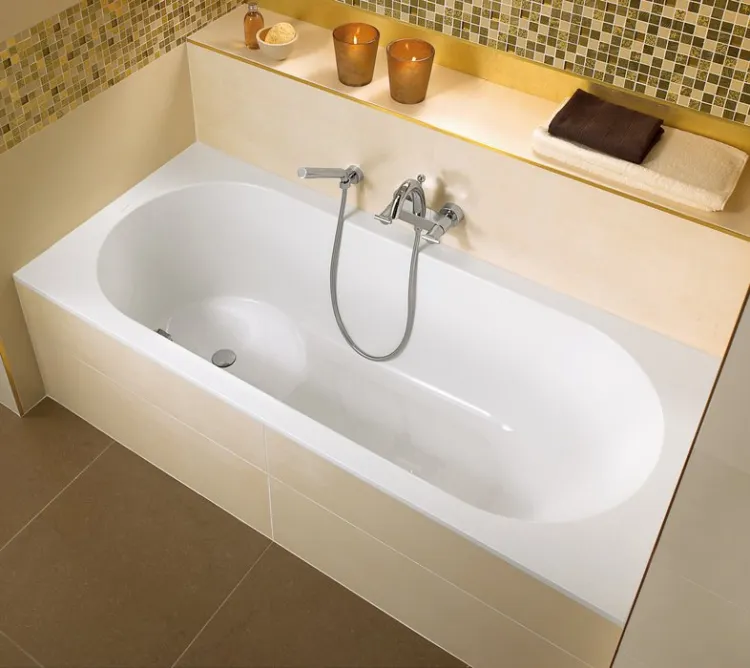 Ванна, Villeroy&Boch, Libra, ширина, мм-1700, глубина, мм-750, высота, мм-432, водоизмещение (л)-125, тип установки-встраиваемый/пристенный, форма-прямоугольная, слив-перелив-необходимо заказать, диаметр слива, мм-52, ножки-есть, материал-Quaryl, в комплекте-1 кольцевая пила (для сверления переливного отверстия), цвет-белый арт-UBQ170LIB2V-01