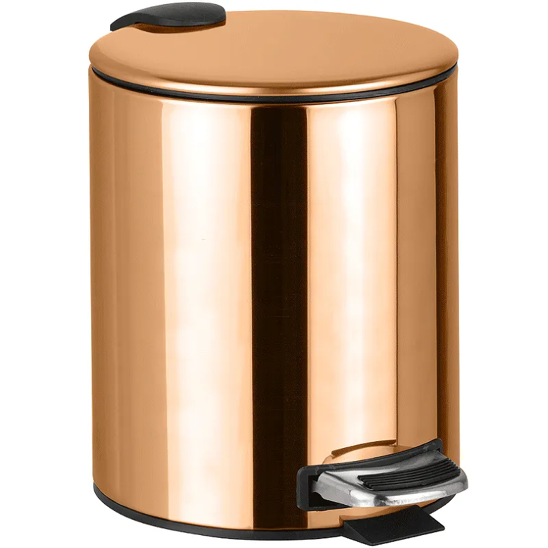 - Современный дизайн ведра для мусора: Элегантное медное золото и глянцевое покрытие дополнят любой интерьер.