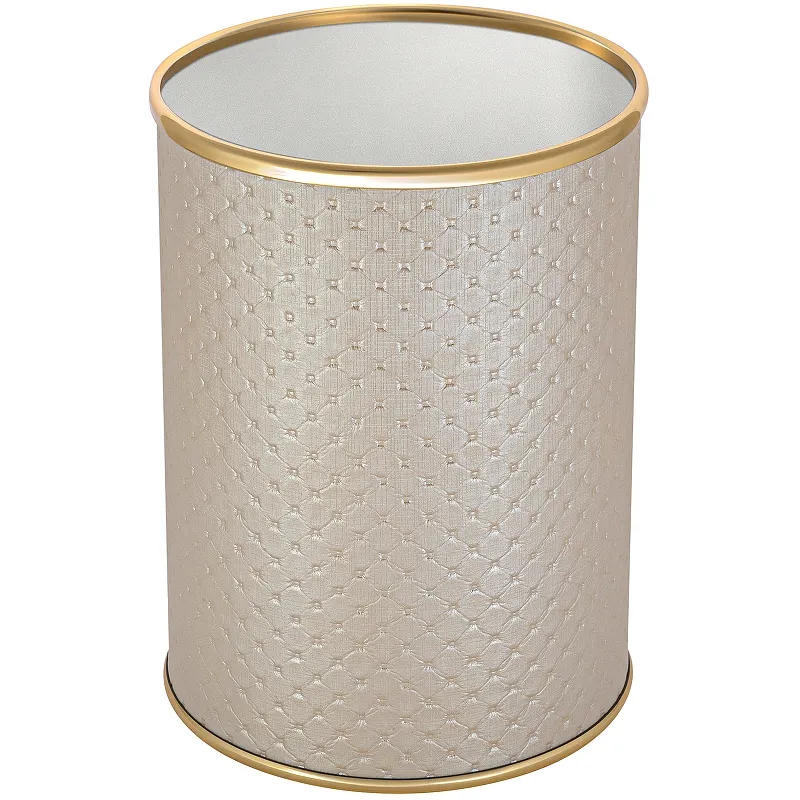 Ведро для мусора Geralis M-PLG-B Punto — это идеальное решение для современного интерьера. Данное ведро для мусора бежевого цвета с золотым кантом станет стильным акцентом в любом помещении. Изготовлено из экокожи и ABS-пластика, оно сочетает в себе прочность и элегантность, обеспечивая долговечность использования. Напольный монтаж делает его удобным для размещения в офисах и жилых зонах.