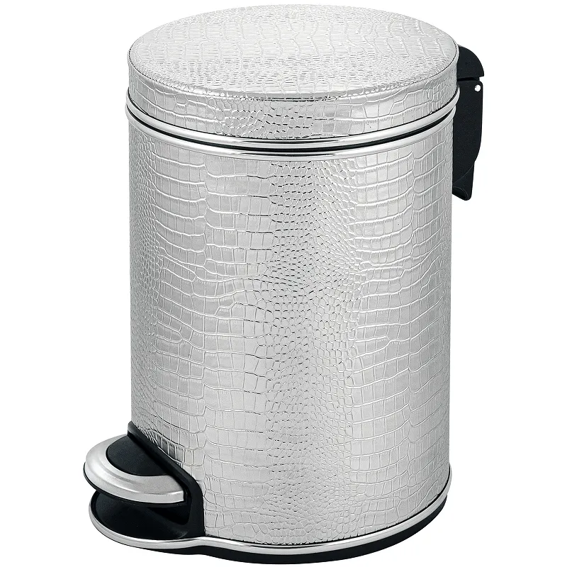 Ведро для мусора Geralis V-KHH-B Croco с педалью.Характеристики: Цвет: серебро. Кант: хром. Материал: экокожа, ABS-пластик, металл. Габариты (ШхВхД): 210х290х260 мм. Объем: 5 л. Плавное закрывание крышки. Внутри мусорного ведра, съемное пластиковое ведро с ручкой. Надежный педальный механизм открытия крышки. Монтаж: напольный.
