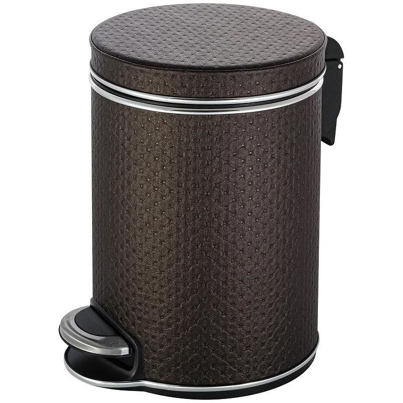 Ведро для мусора Geralis V-PCH-B Punto с педалью.Характеристики: Цвет: шоколад. Кант: хром. Материал: экокожа, ABS-пластик, металл. Габариты (ШхВхД): 210х290х260 мм. Объем: 5 л. Плавное закрывание крышки. Внутри мусорного ведра, съемное пластиковое ведро с ручкой. Надежный педальный механизм открытия крышки. Монтаж: напольный.