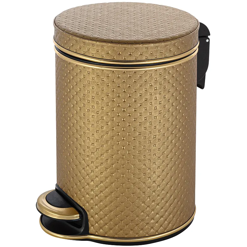 - Современный дизайн ведра для мусора: Элегантная золотая отделка и кант подчёркивают стиль и роскошь.