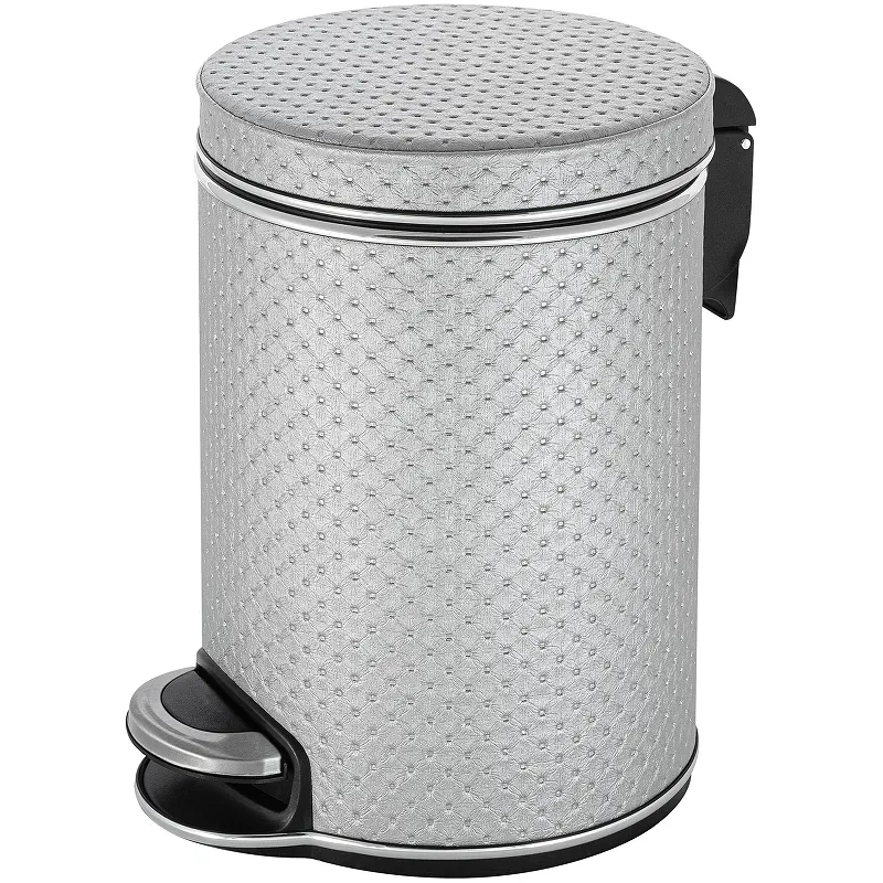 Ведро для мусора Geralis V-PHH-B Punto с педалью.Характеристики: Цвет: серебро. Кант: хром. Материал: экокожа, ABS-пластик, металл. Габариты (ШхВхД): 210х290х260 мм. Объем: 5 л. Плавное закрывание крышки. Внутри мусорного ведра, съемное пластиковое ведро с ручкой. Надежный педальный механизм открытия крышки. Монтаж: напольный.
