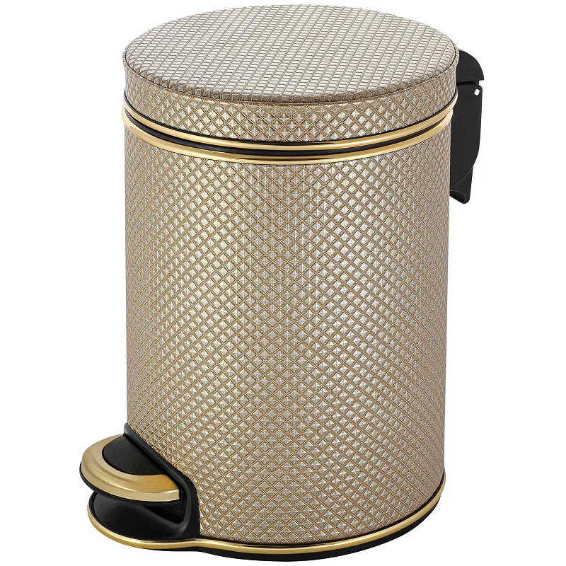 - Современный дизайн ведра для мусора: Бежевый темный цвет и золотой кант добавят элегантности вашему интерьеру.