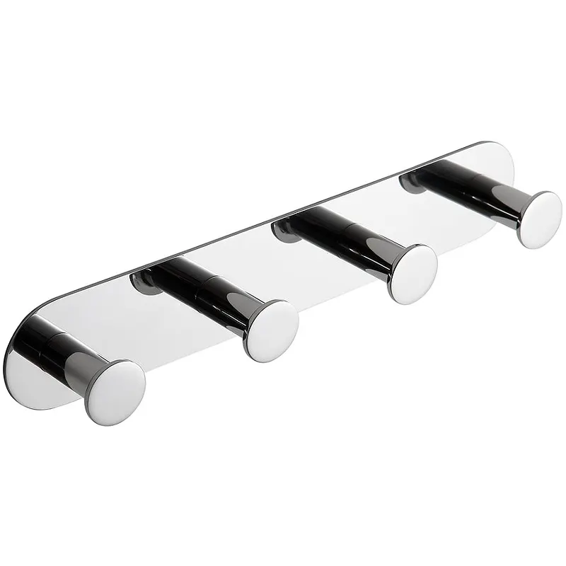 Вешалка для полотенец Bemeta Easy 163106391.Характеристики: Цвет: нержавеющая сталь полированная. Материал: нержавеющая сталь. Поверхность: полированная. Размер (ШхВхД): 255х45х31 мм. Количество крючков: 4. Крепление на самоклеющуюся ленту. Монтаж: настенный. В комплекте поставки: Вешалка для полотенец. Самоклеющаяся лента 3 м.