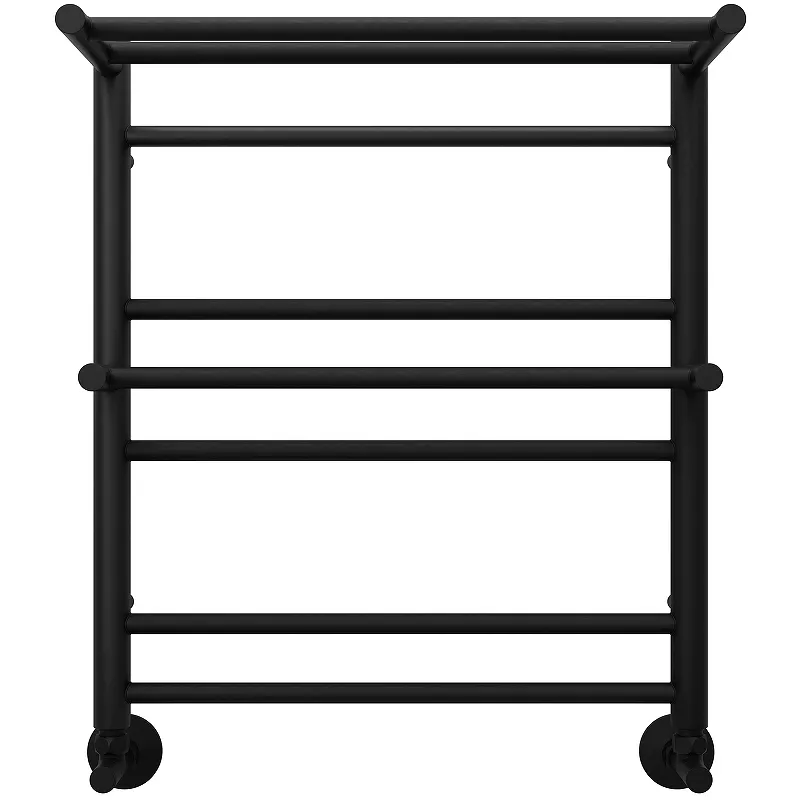 Водяной полотенцесушитель Aquatek Альфа П7 500x600 AQ RRP0760BL с полкой.Характеристики: Цвет: черный муар. Материал: сверхпрочная пищевая нержавеющая сталь AISI 304L. Покрытие: износостойкая, термостойкая порошковая краска. Размер (ШхВхГ): 530х600х257 мм. Межосевое расстояние: 500 мм. Количество перекладин: 8. Группировка: 3-3-2. Форма: лесенка. Профиль ребер: круг диаметром 18 мм. Профиль вертикальных стоек: круг диаметром 32 мм. Тип подключения: нижнее/диагональное. Площадь помещения: 3 м2. Рабочее давление: 9 атм. Давление испытаний: 15 атм. Подключение: к системе горячего водоснабжения / к системе центрального отопления. Диаметр подключения: 1/2. Монтаж: подвесной. В комплекте поставки: Полотенцесушитель. Заглушка с воздухоотводом 1 шт. Заглушка плоская 1 шт. Крепления у стене 4 шт. Шестигранный ключ 1 шт.