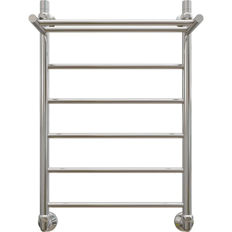 Водяной полотенцесушитель EWRIKA Сафо FP 80х50 с полкой.Характеристики: Цвет: хром. Материал: нержавеющая сталь. Форма: лесенка. Количество секций: 7. Межосевое расстояние: 50 см. Монтаж: подвесной. Направление подключения: горизонтальное, вертикальное, диагональное. Подключение: к системе горячего водоснабжения, к системе центрального отопления, к закрытой системе отопления. Тип шва: электросварной. Рабочее давление: 7,5 бар. Испытательное давление: 25 бар. Макс. давление: 23 бар. Площадь обогрева: 4 м2. Теплоотдача: 400 Вт. Макс. температура теплоносителя: 100 С. Высота: 825 мм. Ширина: 530 мм. В комплекте поставки: Полотенцесушитель. Крепления. Накидная гайка. Муфта. Декоративные заглушки. Кран Маевского. Отражатели. Полка.