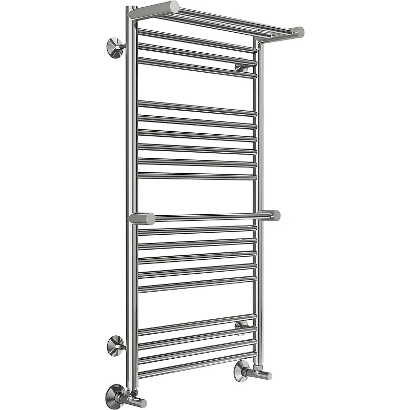 Водяной полотенцесушитель Terminus Аврора П20 500х1000 4670078529237 с полкой Хром, нижнее подключение, G 1/2" ВР, с угловым соединением
