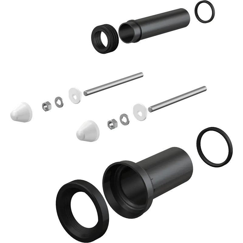 Впускной/выпускной патрубок для унитаза Alcaplast M900. Для подключения воды и канализации к подвесному унитазу, для скрытых систем инсталляции. Содержание комплекта: патрубок сливной для подключения подвесного унитаза к стокам, полипропилен, 90 мм, с прокладками; соединительный патрубок для подключения подвесного унитаза к бачку, полипропилен, 45 мм, с прокладками и манжетой; крепежный материал для крепления унитаза: шпилька М12 2 шт., шайба 4 шт., колпачок 2 шт., гайка 2 шт., гофрированный рукав 2 шт.