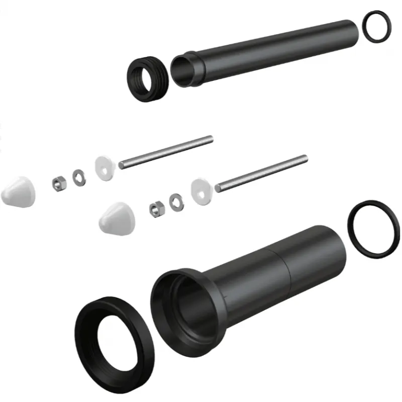Впускной/выпускной патрубок для унитаза с удлиненными деталями для людей с ограниченной физической активностью Alcaplast M9000.Для подключения воды и канализации к подвесному унитазу удлиненный комплект.Для скрытых систем инсталляции.Материал: полипропилен, оцинкованная сталь.В комплекте поставки: патрубок сливной для подключения подвесного унитаза к стокам, полипропилен, 90 мм, с прокладками, соединительный патрубок для подключения подвесного унитаза к бачку, полипропилен, 45 мм, с прокладками и манжетой, монтажный комплект для крепления унитаза: шпилька М12 2 шт, шайба 4 шт, колпачок 2 шт, гайка 2 шт, гофрированный рукав 2 шт.