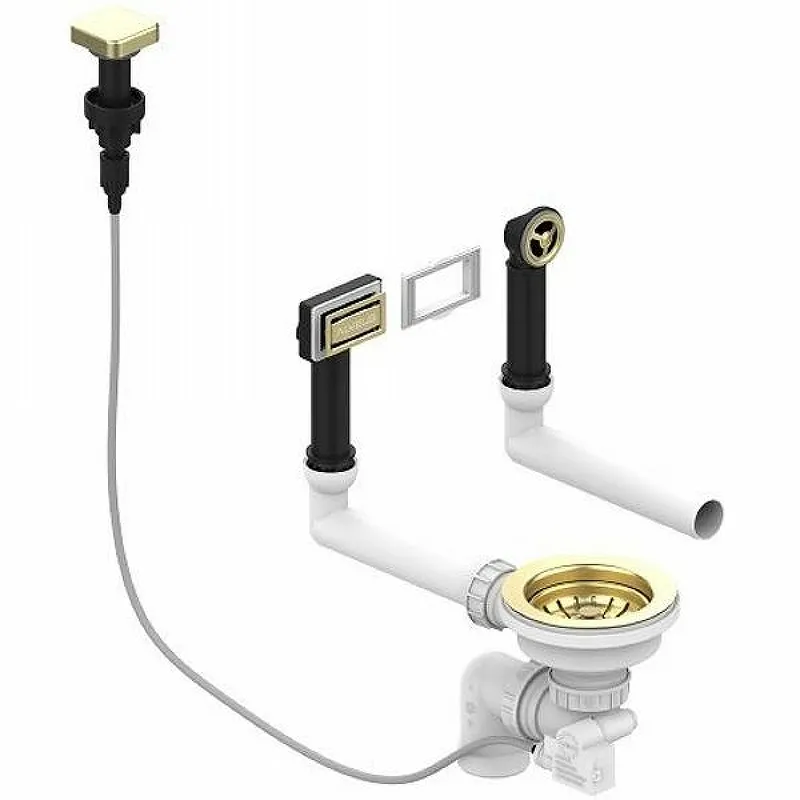 Выпуск для кухонной мойки Alveus 1144850 c рамкой и заглушкой.Характеристики: Цвет: золото (Gold). Материал: нержавеющая сталь AISI 304, пластик. Покрытие: PVD. С вертикальным переливом pop up. Диаметр слива: 90 мм. В комплекте поставки: Выпуск для кухонной мойки. Два варианта рамки для переливного отверстия (прямоугольная / квадратная).