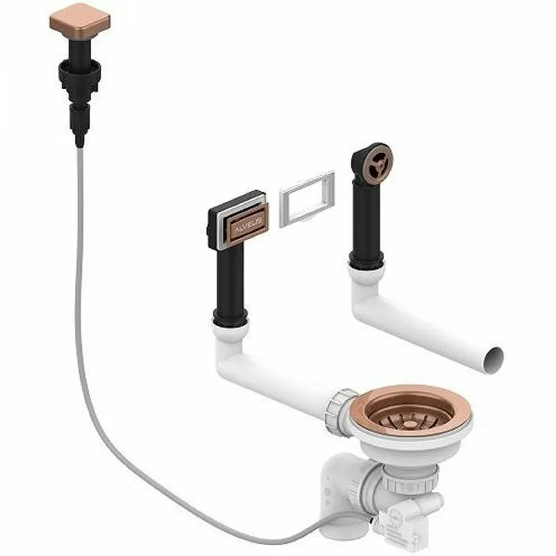 Выпуск для кухонной мойки Alveus 1144851 c рамкой и заглушкой.Характеристики: Цвет: медь (Gold). Материал: нержавеющая сталь AISI 304, пластик. Покрытие: PVD. С вертикальным переливом pop up. Диаметр слива: 90 мм. В комплекте поставки: Выпуск для кухонной мойки. Два варианта рамки для переливного отверстия (прямоугольная / квадратная).