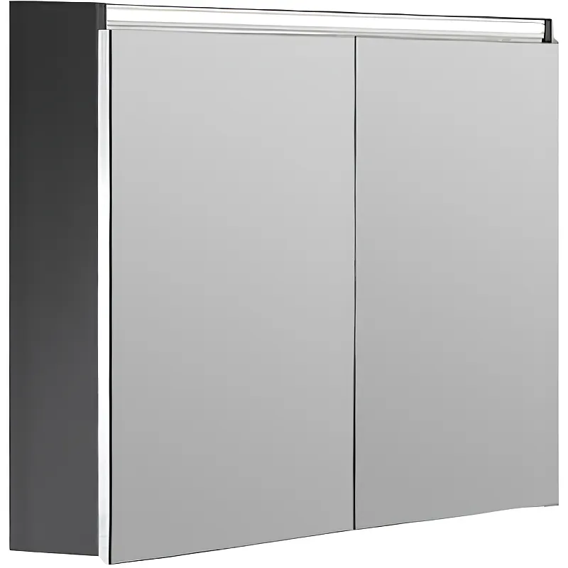 Зеркальный шкаф Boheme Armadi Art Vallessi 80 547-A matt с подсветкой.Характеристики: Цвет: антрацит матовый. Материал корпуса: МДФ. Материал фасада: зеркало. Покрытие корпуса: акрил. Размеры (ШхВхГ): 80х65х13 см. Форма: прямоугольная. Монтаж: подвесной. Тип лампы: светодиодная. Система хранения: 2 распашные дверцы с механизмом плавного закрывания, полки внутри шкафа. В комплекте поставки: Зеркальный шкаф. Полки. Комплект креплений.