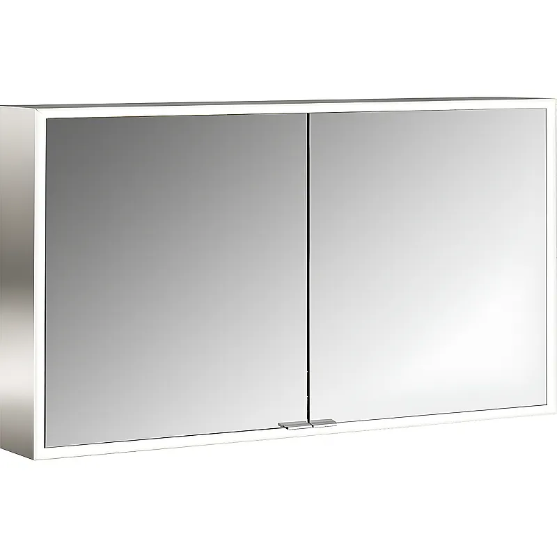Зеркальный шкаф Emco Asis prime 120 9497 060 84 с подсветкой.Характеристики: Цвет: серебро. Материал корпуса: алюминий. Материал фасада: зеркало. Размеры (ШхВхГ): 120х70х16.7 см. Монтаж: подвесной. Подсветка по периметру: LED. Регулируемая подсветка от холодного белого (6000 K) до теплого белого (3000 K). Класс энергоэффективность A+. Класс защиты IP20. Цвет фурнитуры: хром. Система хранения: 2 распашные дверцы с механизмом плавного закрывания, стеклянные полки внутри шкафа. Оснащение: 2 кнопки освещения, 2 розетки. В комплекте поставки: Зеркальный шкаф. Стеклянные полки.