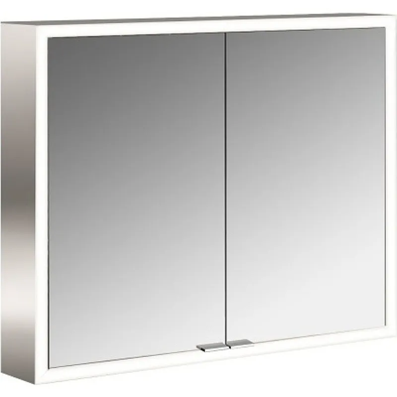 Зеркальный шкаф Emco Asis prime 80 9497 060 62 с подсветкой.Характеристики: Цвет: серебро. Материал корпуса: алюминий. Материал фасада: зеркало. Размеры (ШхВхГ): 80х70х16.7 см. Монтаж: подвесной. Подсветка по периметру: LED. Регулируемая подсветка от холодного белого (6000 K) до теплого белого (3000 K). Класс энергоэффективность A+. Класс защиты IP20. Цвет фурнитуры: хром. Система хранения: 2 распашные дверцы с механизмом плавного закрывания, стеклянные полки внутри шкафа. Оснащение: 2 кнопки освещения, 1 розетки. В комплекте поставки: Зеркальный шкаф. Стеклянные полки.