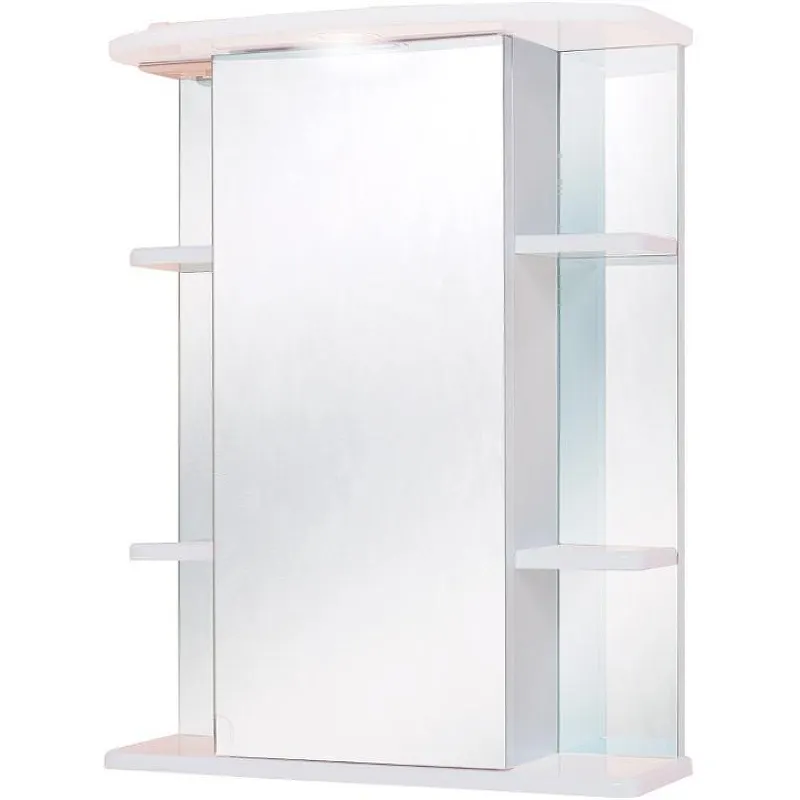 Зеркальный шкаф Onika Глория 55.01 L 205504 с подсветкой.Прямоугольный зеркальный шкаф отличается практичностью: максимально простой дизайн и оптимальные размеры позволяют сочетать его с большинством тумб под раковину.Зеркальное полотно создано на основе серебряной амальгамы, которая обеспечивает качественное изображение, влагостойкость и долгий срок эксплуатации.Характеристики: Цвет: белый. Материал корпуса: ЛДСП. Материал фасада: МДФ, ЛДСП. Покрытие корпуса: ламинирование. Покрытие фасада: пленка, ламинирование. Габариты (ШхВхГ): 55x71,2x24,5 см. Подсветка: встроенный LED светильник. Механический выключатель и розетка. Система хранения: 1 распашная дверка, открытые полки. Ориентация: петли расположены слева. Механизм открывания: доводчик. Монтаж: подвесной. В комплекте поставки: зеркальный шкаф, крепления.