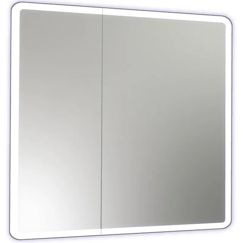 Зеркальный шкаф Reflection Chill 800х800 RF2315CH с подсветкой..Характеристики: Цвет: белый матовый. Материал фасада: зеркальное полотно. Материал корпуса: ЛДСП. Покрытие корпуса: ламинат. Габариты (ШxВхГ): 800х800х140 мм. Система хранения: две распашные дверцы (внутри полки). Оснащение: механизм с доводчиком. Тип подсветки: светодиодная. Тип выключателя: датчик на взмах руки. Температура свечения LED: 6000 K. Форма: прямоугольная. Ориентация: универсальная. Монтаж: подвесной. В комплекте поставки: Зеркальный шкаф.