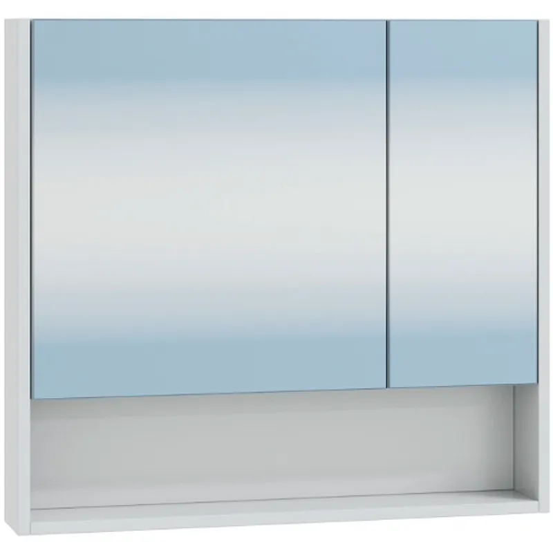 - Функциональная система хранения: Зеркальный шкаф с открытыми полками и дверками предлагает удобное хранение ваших принадлежностей.