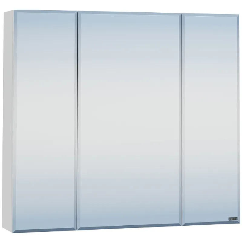 Зеркальный шкаф Санта Стандарт 80 с подсветкой 113010 Белый. Цвет: белый. Габариты корпуса шкафа (ШхВхГ): 79 х 73 х 15 см. Фасад и корпус шкафа выполнены из МДФ/ЛДСП. Материал покрыт пленкой высокого качества. Безупречная фрезеровка фасада и нанесение пленки гарантирует высокую влагостойкость и прочность. Шкаф оснащен одной дверцей с двойным зеркалом на петлях с доводчиками для плавного и бесшумного открытия и закрытия.