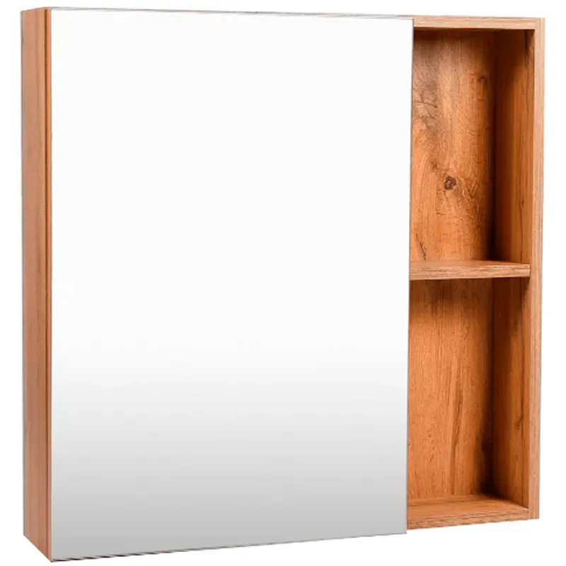 Зеркальный шкаф VIANT Бостон 50 VBOS50-ZSH.Характеристики: Цвет: дуб вотан. Материал корпуса: ЛДСП Lamarty. Материал фасада: зеркальное полотно. Покрытие: ламинация. Размер (ШхВхГ): 500х700х160 мм. Система хранения: распашная дверца. открытые полки. Оснащение: петли с доводчиком Boyard. Монтаж: подвесной. В комплекте поставки: Зеркальный шкаф.