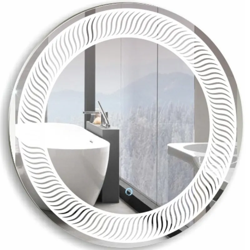 - Зеркало с сенсорным выключателем облегчает управление подсветкой, значительно улучшая функциональность.