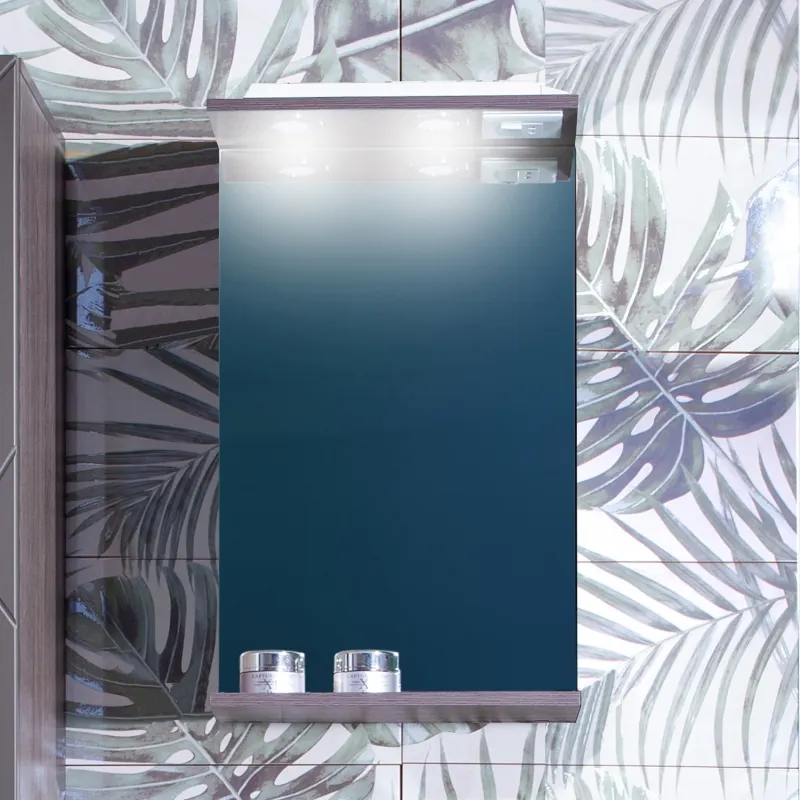 - Практичность и функциональность: Зеркало с полкой, выключателем и розеткой обеспечивает дополнительное удобство в использовании.