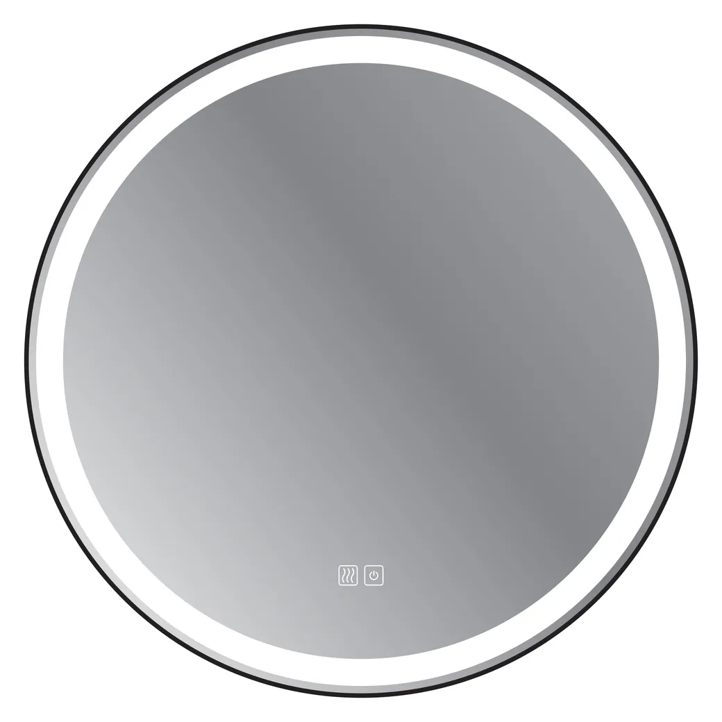 Зеркало 60x3 мм круглое в металлической раме с направленной подсветкой, двойными сенсорным выключателем на прикосновение и функцией подогрева. Корпус изделия выполнен из стали толщиной 2 мм, Установлен нагревательный мат 160*350 мм. Диммер с возможностью регулировки яркости свечения. Укомплектован светодиодной лентой SMD 3528, IP 44, 12V, 6200 К, холодный свет. Крепеж для монтажа прилагается.