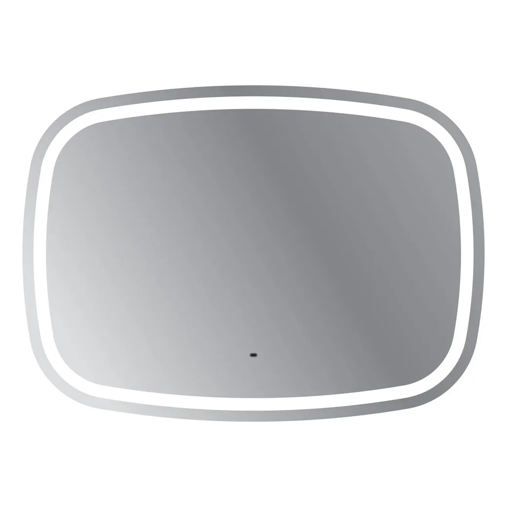 Зеркало 110x80, реверсное, с контурной и направленной подсветкой. Корпус изделия выполнен из светорассеивающего пластика, с бесконтактным сенсорным выключателем расположенным за зеркальным полотном. Диммер с возможностью регулировки яркости свечения. Укомплектован светодиодной лентой SMD 3528, IP 44, 12V, 6200 К, холодный свет. Крепеж для монтажа прилагается.