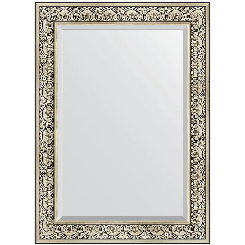 Зеркало Evoform Exclusive 110х80 BY 3476 с фацетом в багетной раме - Барокко серебро 106 мм
