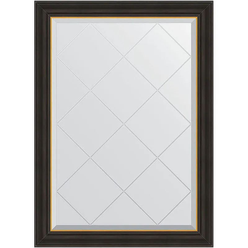 Зеркало Evoform Exclusive-G 101х74 BY 4533 с гравировкой в багетной раме - Черное дерево с золотом 71 мм